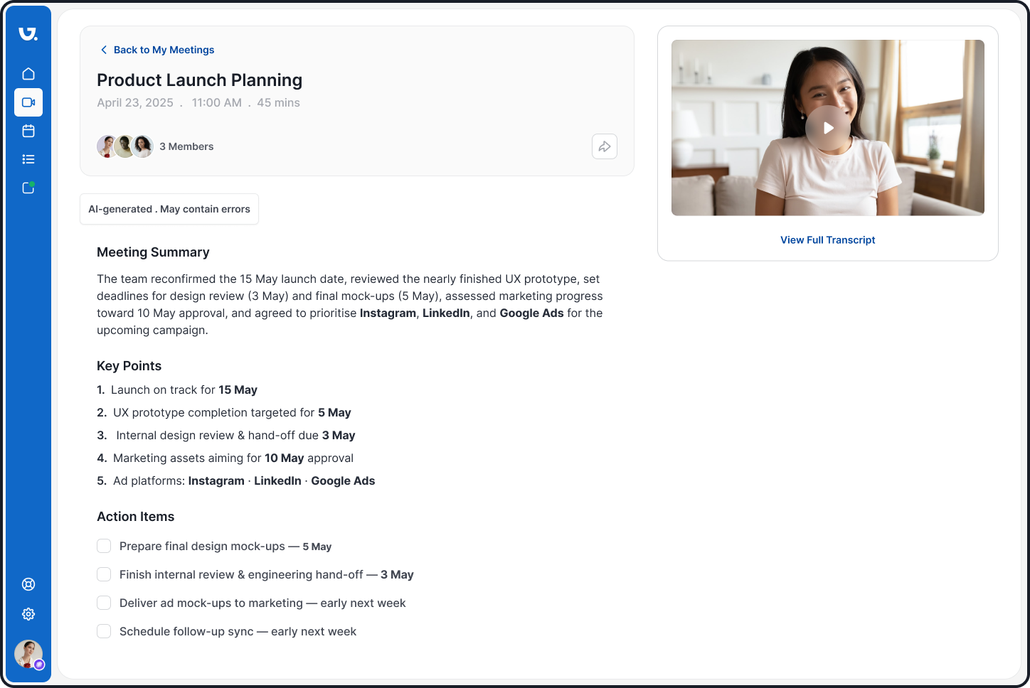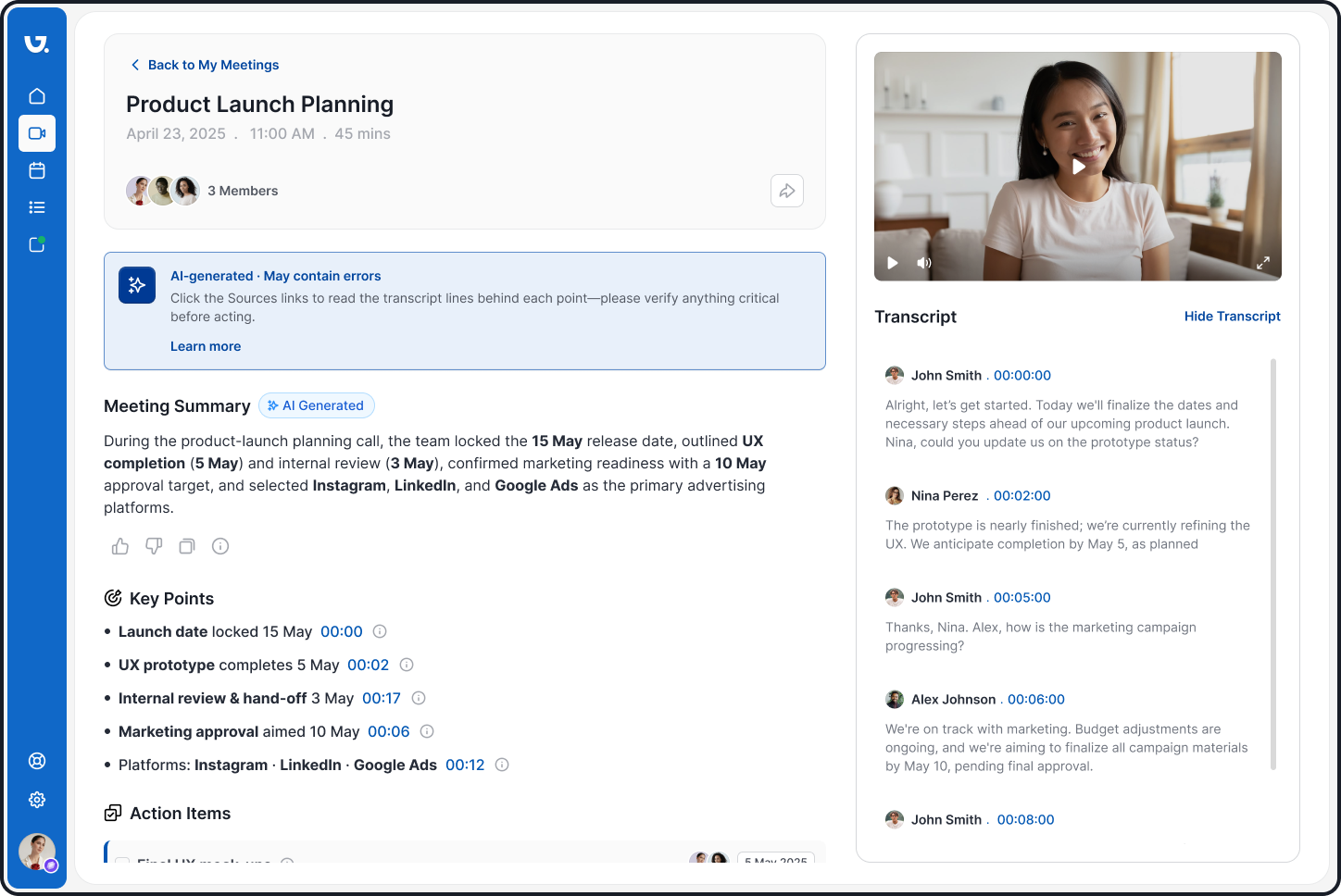 I set out to design an AI meeting summarization interface that users could trust and use with confidence.